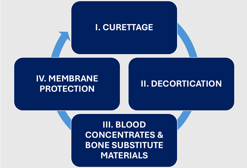 The curriculum includes detailed instruction on thorough socket debridement and decortication, socket preservation, ridge augmentation, and implantology with both bone-level and tissue-level titanium, and ceramic implants as well as soft tissue management concepts based on the principles of the Guided Open Wound Healing Concept.
